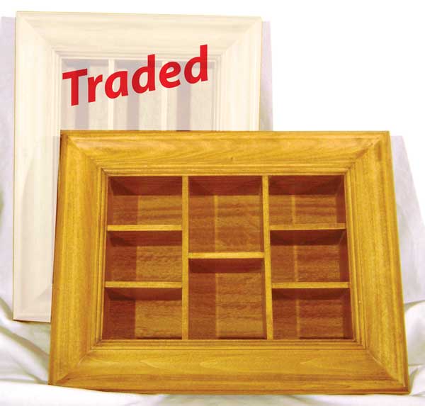 These walnut Keepsake/Shadow Box wooden frames are great for showcasing all those little knick-knacks! Each frame measures 16"X20"X4" and can be hung horizontally or vertically! They are beautiful and in excellent shape! This was a "Boomerang Trade"! See what a "Boomerang Trader" is in the "Meet The Swappers" Section |