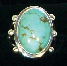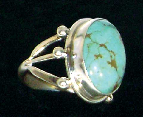 BRAND NEW This trade came from Arizona! The ring is signed and made by Augustine Largo, a silversmith living near Shiprock on the reservation in New Mexico. The turquoise is #8 spiderweb from the legendary mine of the same name that ceased production about 40 years ago in Nevada. The Indians love this the lacey pattern of matrix in this turquoise and were the ones to first name it 'spiderweb.' There's very little of this turquoise available. It's in the hands of several traders who market a small amount every couple of years or so. The price always goes up. Size 8. See more on this turquoise ring For more information on this ring, please read the following: cocopah.pdf If you like this ring and want to see more jewelry, please visit the Cocopah online store at http://www.beadofthemonthclub.com/ Meet Ann and find out why she wanted to trade me for the October 1970 issue in Meet "The Swappers" section! |